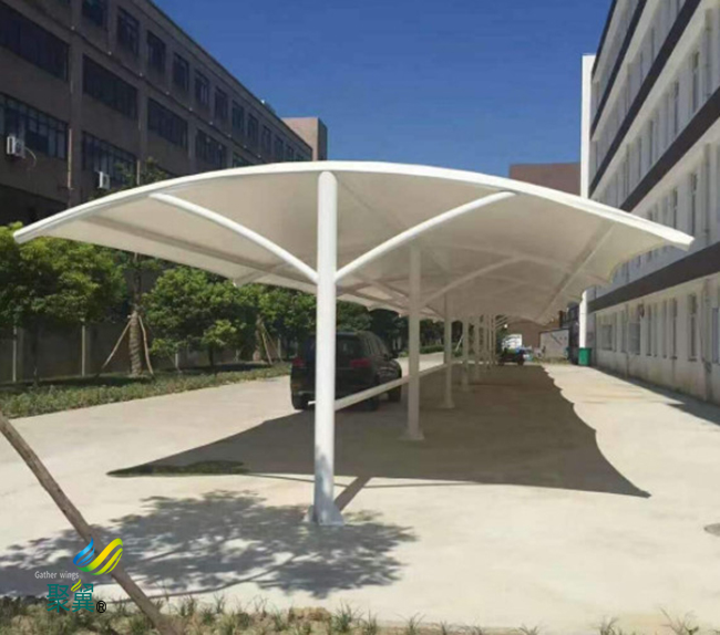 膜結構車棚是將力與美進行了很好的結合,在造型設計上是很多樣的。這種材料是很柔軟的,由于膜結構車棚特殊的構造,所形成的雙曲流線是正、負高斯曲率的,就是我們所常見的馬鞍形,并且通過其他的膜結構車棚骨架結構來對它進行支撐,這樣才可以實現造型形態的多樣化,將力與美實現完美的結合。