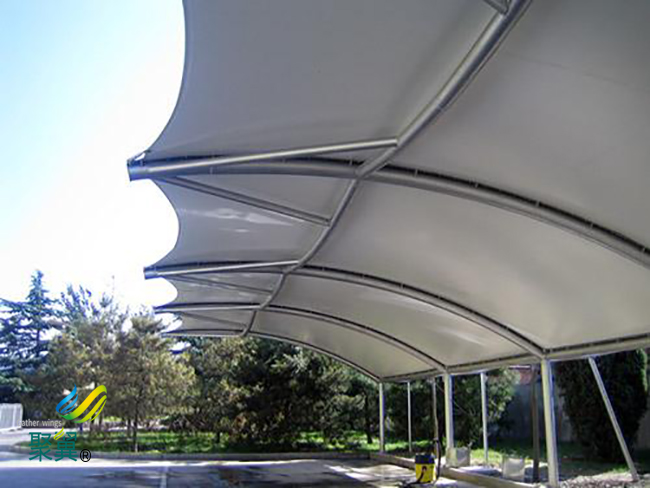 更自在的建筑形體塑造,膜結構車棚多變的支撐構造和柔性膜材使建筑物外型愈加多樣化,新穎美觀,同時膜結構車棚表現構造之美,且顏色豐厚,可發明更自在的建筑形體和更豐厚的建筑言語。