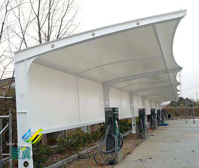 膜結構車棚內部采用38鍍鋅圓管與車棚框架焊接,加強棚頂部強度,可讓棚內感覺寬敞明亮,停靠車輛輕松方便,完全符合 膜結構車棚制作要求規范。