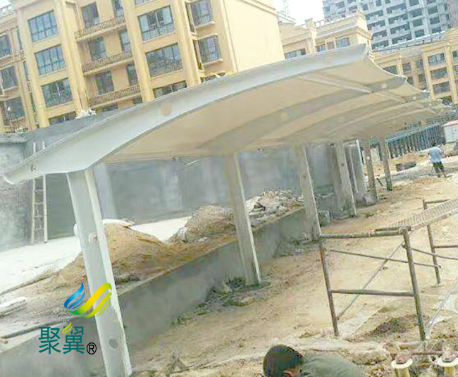 膜結(jié)構(gòu)車棚自潔性。膜結(jié)構(gòu)車棚膜建筑中采用具有防護涂層的膜材,本身不發(fā)黏,落到膜結(jié)構(gòu)車棚膜材表面的灰塵可以靠雨水的自然沖洗而達(dá)到良好的自潔效果,同時保證建筑的使用壽命。