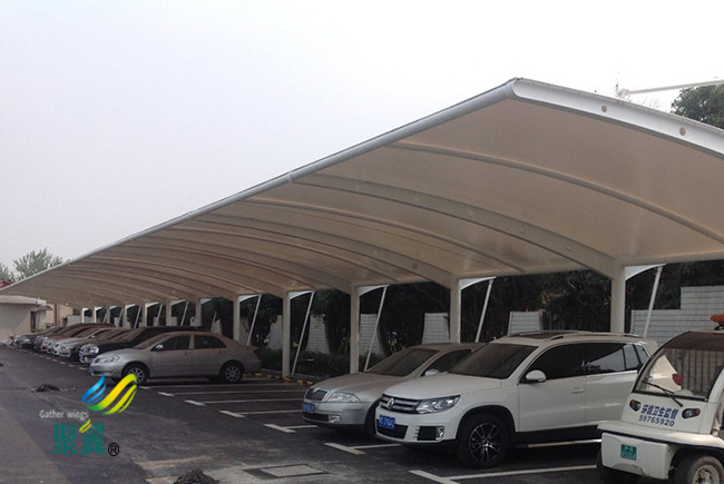 膜結構車棚能源節省膜結構外形美觀,同時又為人們創造了自然光采光的環境,與玻璃材料相比,膜結構車棚大大減少了熱量的傳遞,與不透光的材料相比。