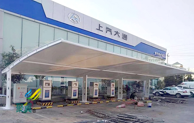 膜結構車棚由于一切的加工和制造都可以在工廠內完成,因此,施膜結構車棚工的周期很短,相比于一半項目,至少可以縮短一半以上。