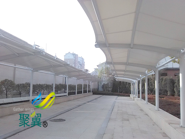膜結構車棚工期短:膜結構車棚膜材裁剪。拼合成型及骨架的鋼結構、膜結構車棚鋼索均在工廠加工制作,現場只需組裝,膜結構車棚施工簡便,故施工周期比傳統建筑短。