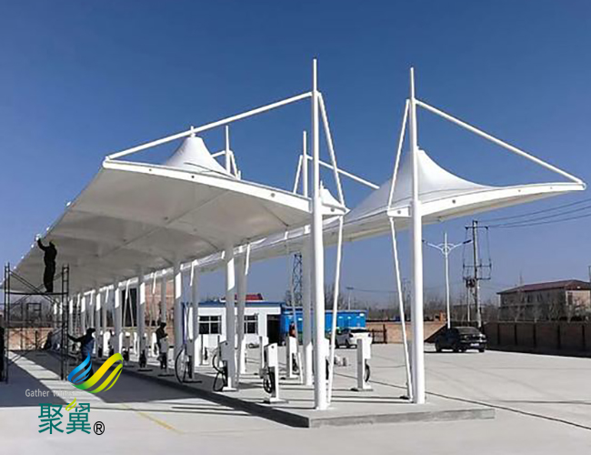 4、如果膜結構車棚膜面破壞部分超過300mm長,需將整個破壞的單元拆下運回工廠修補或更換整個單元。