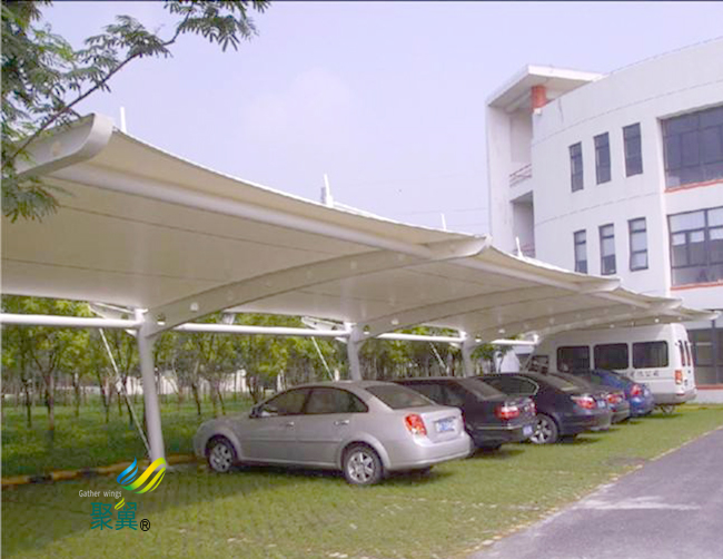 膜結構車棚景觀施工周期短。膜結構車棚施工項目的加工生產均在工廠完成,可減少現場施工時間,減少施工交叉。與傳統的施工方法相比,膜結構車棚建筑的施工周期可縮短至少一半,一般膜結構車棚工程可在兩個月內完成,不影響其他工程的施工進度。