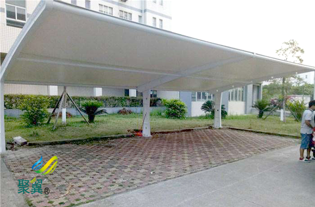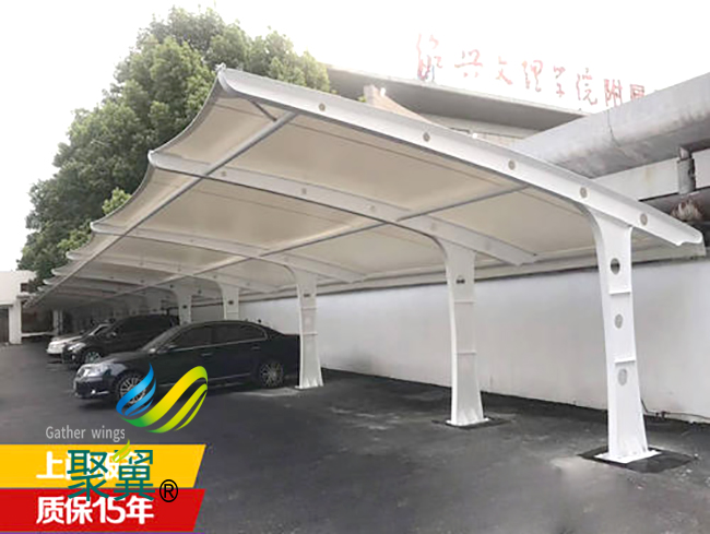 膜結構車棚膜構造的支架構造是由高強度構架產生內部的伸拉才能,構成一定的外形,作為掩蓋構造,膜結構車棚膜構造 膜結構車棚能滿足車輛車風擋雨需求,也能有效的維護車輛起到減緩車輛老化速度的功用。