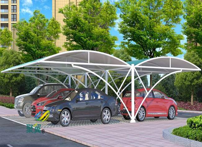 膜結構車棚膜構造的支架構造是由高強度構架產生內部的伸拉才能,構成一定的外形,作為掩蓋構造,膜構造膜結構車棚能滿足車輛車風擋雨需求,也能有效的維護車輛起到減緩車輛老化速度的功用。