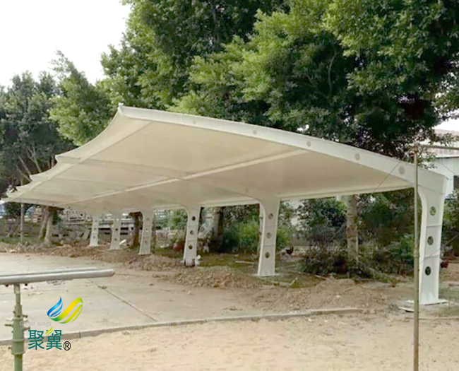 膜結構車棚制作應具備專業工藝流程線、必要的裁剪、熱合設備及測試設備。同時 膜結構車棚應具備經鑒定或專業評定的膜結構裁剪設計軟件。