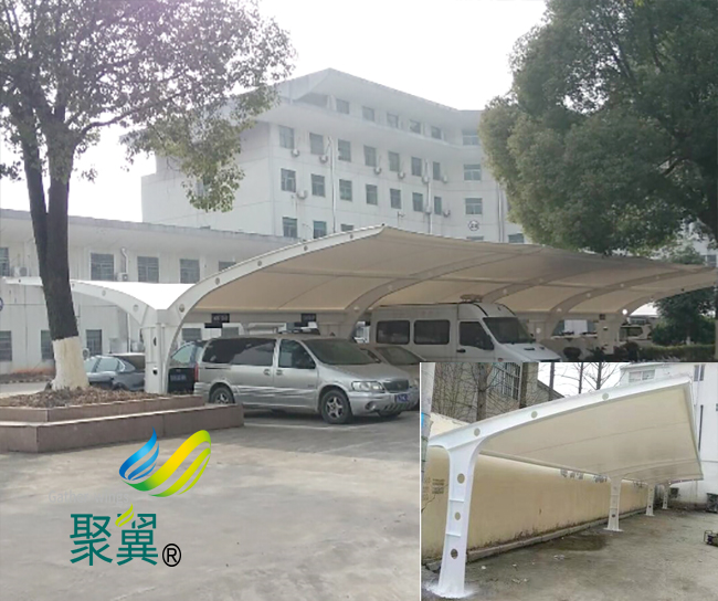 膜結構車棚防火性與抗震性,膜結構建筑所采用的膜材具有卓越的阻燃性和耐高溫性,故能很好的滿足防火要求。由于結構自重輕,又為柔性結構且有較大變形能力,故抗震性能好。