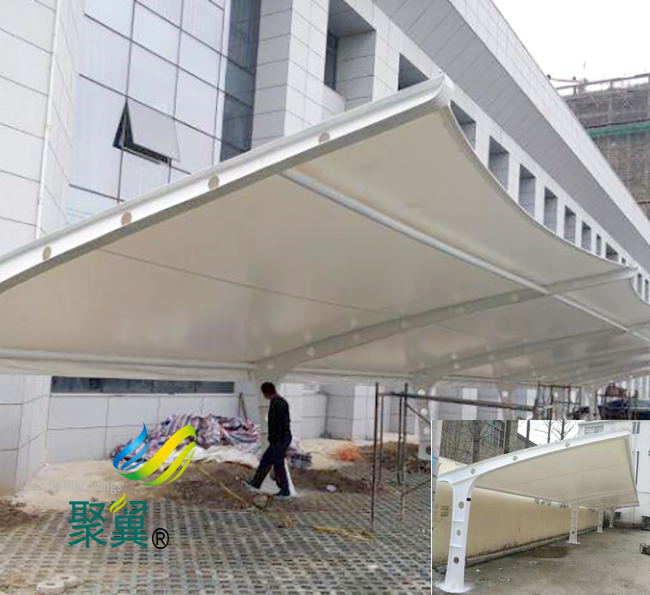 其次就是要確定大小和素的布置方式,這樣就能夠讓積水、積雪等情況,給我們的膜結構車棚膜材造成影響或是變形,讓車棚更加安全。最后在膜結構車棚建設過程中,還要做好相關的防火措施,讓我們的車棚更加堅固。