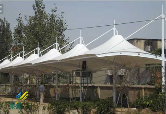 膜結構車棚防震性是眾所周知的,并且膜結構的裝置快捷、造型優美、施工周期短、曲面多變性,膜結構車棚的變形才能和擴張性導致抗震功能比傳統車棚強一萬倍之多,這也和膜結構車棚的結構組成分不開的。