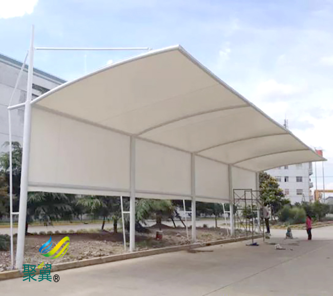 嚴格的工藝,膜結構車棚PVC之所以能被廣泛地應用于建材行業,有兩點很重要的原因:膜結構車棚PVC獨特的性能(防雨,耐火,抗靜電,易成型),膜結構車棚PVC低投入高產量的特點。 鋼構造膜結構車棚的支架構造經過鋼資料的拼接焊接而成,特性是結實,也能遮風擋雨,就是外型單一,拆裝比擬費事,但是抗震防風才能強。 膜結構車棚PVC膜具有高抗光性和耐火性,保證PVC膜的高質量,所以全面地看,膜結構車棚PVC實際是一種低投入、高產量的產品。