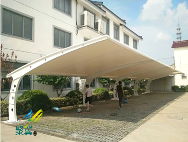很多制造商在搭建膜結構車棚的時分,經過設計特殊的停車棚部件構造,讓膜結構車棚的部件在裝置的時分,只需求簡單地拼接就可以完成組裝的目的,而且在組裝之后仍能表現出很強的鞏固性和美觀性。 膜結構車棚膜構造的支架構造是由高強度構架產生內部的伸拉才能,構成一定的外形,作為掩蓋構造,膜結構車棚膜構造膜結構車棚能滿足車輛車風擋雨需求,也能有效的維護車輛起到減緩車輛老化速度的功用。