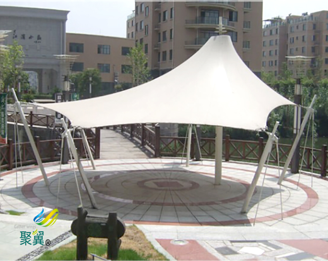 膜構造的膜結構車棚,它具有良好的自潔性、隔熱性和耐久性,還有外型新穎、自重輕等的優點,所以被普遍的應用在各類休閑小品和輕型大跨度無柱空間以及輕型屋蓋建筑結構上。膜結構車棚展示了一種力的均衡美感,膜結構車棚的膜構造是一種張力結構,在一定的張力作用下有一定的外形和剛度,膜結構車棚是一種受力最為合理的結構方式。