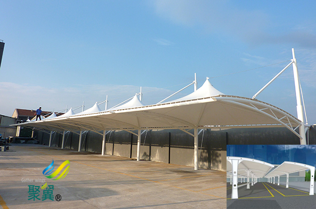 膜結(jié)構(gòu)車棚的結(jié)構(gòu)形式是很簡潔的,設(shè)計也是很專業(yè)的,整個工藝流程也會很完善,這樣膜結(jié)構(gòu)車棚在制作的過程中時間就會大大縮短,膜結(jié)構(gòu)車棚所采用的是可以調(diào)節(jié)和裝卸的節(jié)點形式。