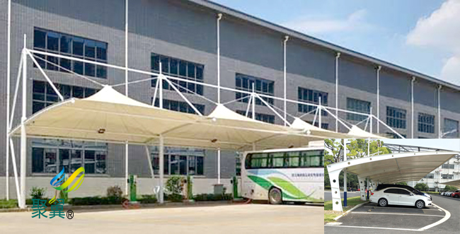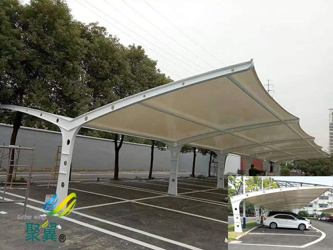 膜結構車棚除了其實質作用——保護車子之外,也被人們看成是一種藝術品,因膜結構車棚獨特的外表越來越多地鑲嵌在現代建筑中,因此,膜結構車棚也被稱為第四代建筑。 膜結構車棚與造型學,色彩學為依托,可結合自然條件及民族風情,根據建筑師的創意建造出傳統建筑難以實現的曲線及造型,膜結構車棚一建筑師的浪漫設想,享受大自然般的浪漫空間。