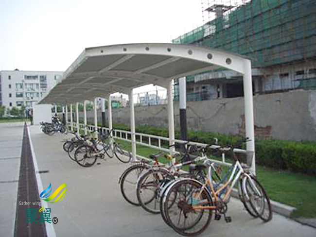 結構車棚大跨度。膜結構自重輕、抗震性能好,可以不需要內部支承,膜結構車棚克服了傳統結構在大跨度(無支撐)建筑上實現所遇到的困難,可創造巨大的無遮擋可視空間,有效增加空間使用面積。