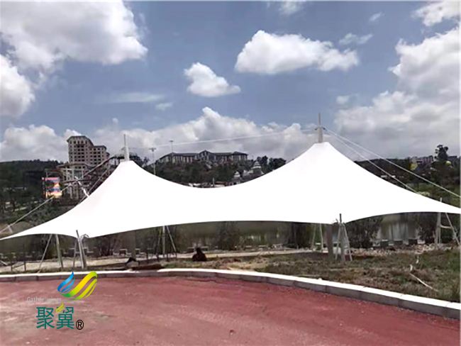 膜結構車棚膜構造和鋼構造主要支架構造有區別,但是膜結構車棚棚頂資料普通都應該選取納米薄膜資料,膜結構車棚特性是防高溫,耐腐蝕,阻燃性好,清洗便當等優勢。