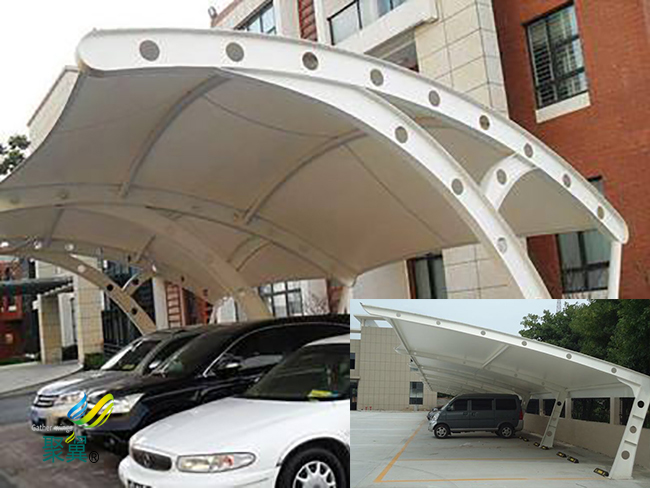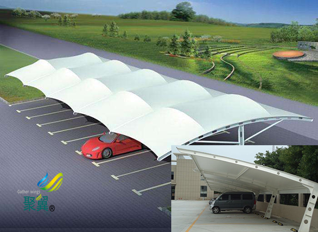 膜結構車棚是一種建筑與結構完善結合的結構體系。膜結構車棚是用高強度柔性薄膜材料與支持體系相結合形成具有肯定剛度的穩固曲面,能承受肯定外荷載的空間結構情勢。膜結構車棚造型自由輕便、阻燃、制作簡易、安裝快捷、節能、易于使用、安全等好處,因而使膜結構車棚活著界各地受到廣泛應用。