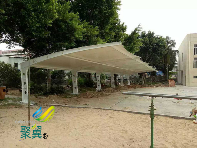 膜結(jié)構(gòu)車棚安裝首先要注意的就是膜結(jié)構(gòu)車棚整體框架采用方鋼焊接成型龍骨架,框架整體做防銹處理,刷防銹底漆三遍,表面噴涂白色高級汽車漆,停車棚主立柱采用150×150鍍鋅方管作膜結(jié)構(gòu)車棚的支撐柱,膜結(jié)構(gòu)車棚身整體結(jié)構(gòu)牢固抗震防風(fēng)系數(shù)高,耐腐蝕。