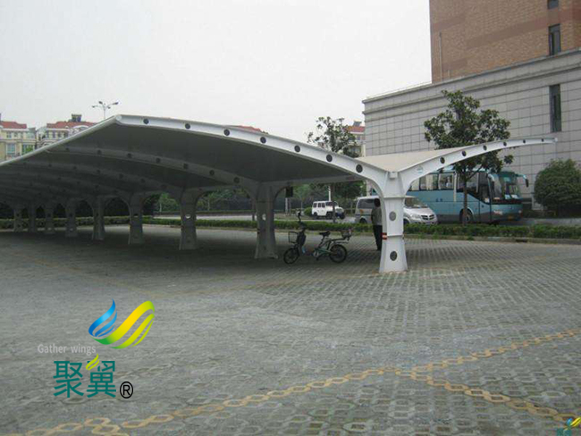 膜結構車棚打破了純直線建筑風格的模式,以其獨有的優美曲面造型,簡潔、明快、剛與柔、力與美的完美組合,膜結構車棚呈現給人以耳目一新的感覺,同時給建筑設計師提供了更大的想象和創造空間。