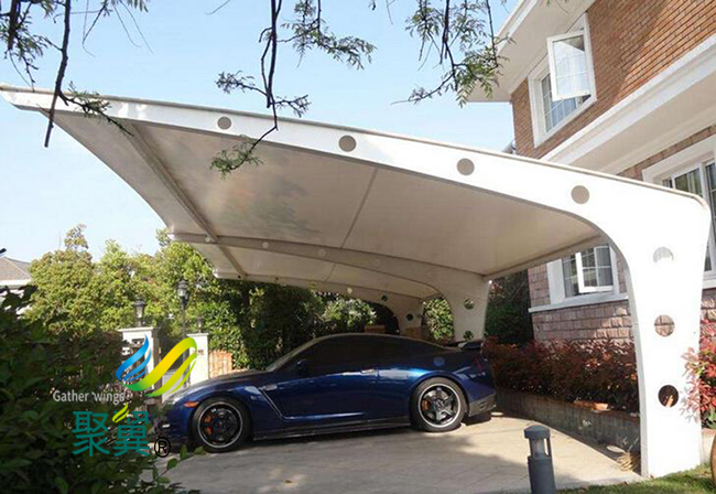 膜結構車棚膜材漫射光的效果,膜材掩蓋的空間內將出現特別的光學效果(有明顯光感但無暗影),膜結構車棚修建規劃中應予以合理使用,選用雙層膜結構時,應考慮到透光率的折減。
