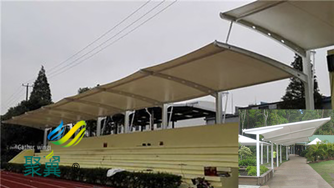 西寧市膜結構車棚中使用的膜材料由基底和涂層組成。基材主要由聚氯乙烯和聚四氟乙烯組成。西寧市膜結構車棚所用的膜材料是具有輕質、高強、阻燃、耐久、隔音、隔熱、自潔等特點的高強度復合材料。