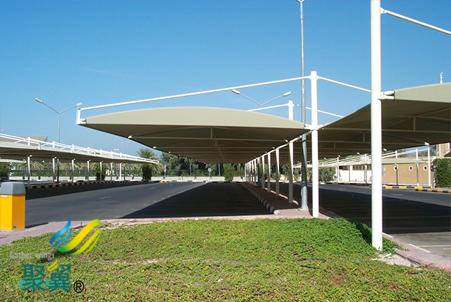 唐山市膜結構車棚景觀施工周期短。膜結構施工項目的加工生產均在工廠完成,可減少現場施工時間,減少施工交叉。與傳統的施工方法相比,  唐山市膜結構車棚建筑的施工周期可縮短至少一半,一般  唐山市膜結構車棚工程可在兩個月內完成,不影響其他工程的施工進度。