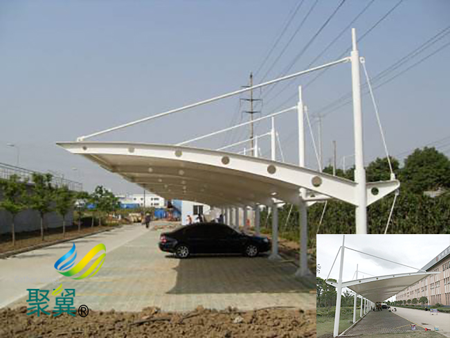 膜結構車棚的透明度很好。白天,陽光可以透過薄膜材料擴散,使室內外照明效果幾乎相同。膜結構車棚充分利用自然采光,節約照明能源。夜晚,膜結構車棚內部的光線通過膜體照亮夜空,充滿夢幻般的視覺效果,給人耳目一新的感覺,膜結構車棚具有良好的宣傳效果。功能與藝術的充分結合,使得膜結構車棚的透明性**適合體育場館、商業空間和公共廣場小品的塑造。