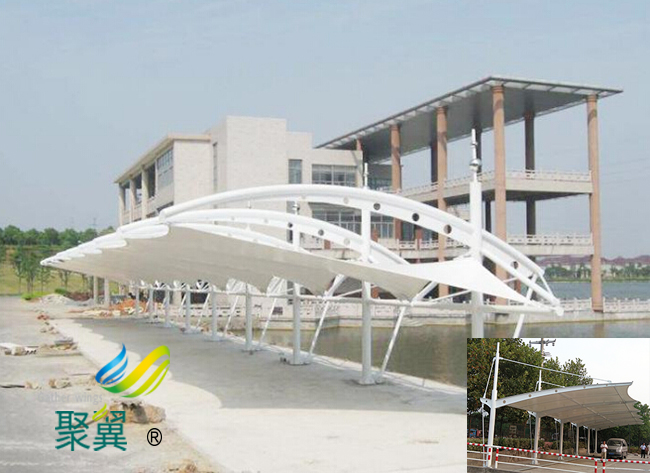 膜結構車棚建筑的特點:體輕:由于膜結構車棚采用的材料和結構確定了膜結構車棚是一種輕型結構,與其他傳統的建筑結構形式相比膜結構**輕。壽命長:膜結構車棚建筑物屬于半永久性的建筑。現在世界上使用較早的膜結構車棚建筑已有30多年的歷史,仍在使用中。