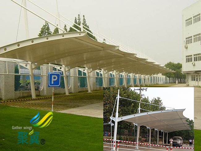 膜結(jié)構(gòu)車(chē)棚具有藝術(shù)性,除了一般的雨篷具有不可比擬的使用價(jià)值,且比較耐用,具有遮風(fēng)擋雨的效果,不僅如此,膜結(jié)構(gòu)車(chē)棚還具有給人美觀的享受。膜結(jié)構(gòu)車(chē)棚本身柔美曲線的效果,且可以剛?cè)岵?jì),造型豐富,使用的時(shí)候**便利。