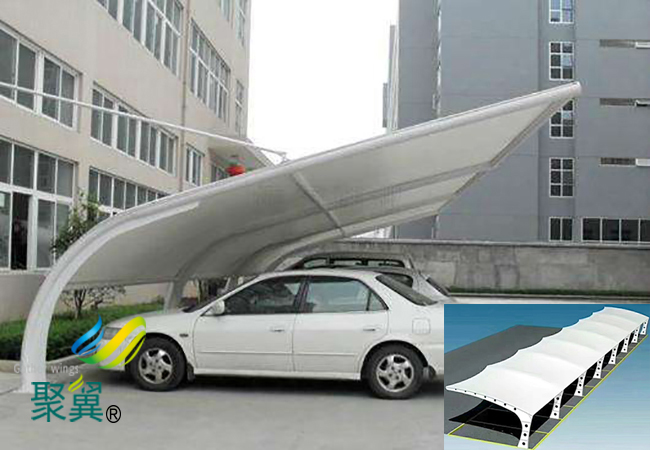 膜結(jié)構(gòu)車棚膜材料是指以聚酯纖維基布或PVDF、PVF、PTFE等不同的表面涂層,配以優(yōu)質(zhì)的膜結(jié)構(gòu)車棚PVC組成的具有穩(wěn)定的形狀,并可承受一定載荷的建筑紡織品。
