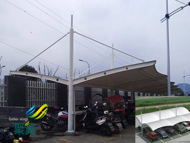 膜結構車棚跨度空間大指出其因為自重輕,膜結構車棚修建能夠不需要內部支撐面大跨度掩蓋空間,這使大家能夠列靈活計和運用修建空間,描繪出愈加有構思的修建,上海聚翼遮陽設備有限公司。