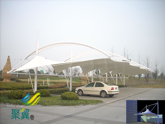 膜結構車棚因此在教育,商業,體育館等公共場所都有很廣泛的應用 吉林省白山市靖宇縣膜結構車棚在最初是作為一種能提供給車輛停泊的地方,使車輛避免了直接面對風吹雨打。用來保證自行車,汽車等在車棚下不受損傷。