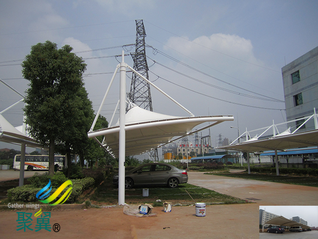3:在湖南省衡陽市南岳區膜結構車棚施工前我們要對膜結構車棚實際使用中的面積做一個規劃,這個就要根據湖南省衡陽市南岳區膜結構車棚的實際停放多少車輛來定的。如果停車的人較多,人流量較大的話,那么湖南省衡陽市南岳區膜結構車棚的面積就一定要夠大,如果人口較少的話,那么我們可以選擇小型的膜結構車棚.