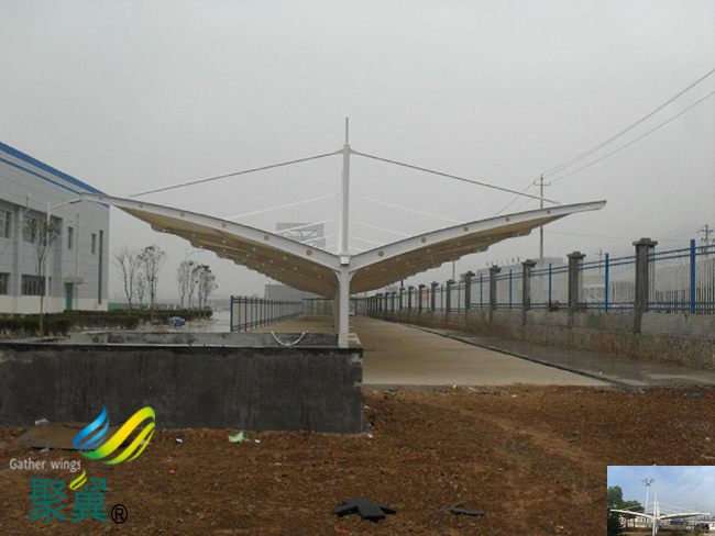 福建省寧德市古田縣膜結(jié)構(gòu)車棚具有很好的透光性。與傳統(tǒng)的車棚相比較,這種車棚,可以讓陽光無法暢通無阻的通過膜結(jié)構(gòu)照射進停車棚。這種材料具有很強的擋光性,在強烈的光照條件下,不會發(fā)生形變,彎曲,霧化,壽命減短等問題,并且很好的阻隔了陽光,使照射的陽光不那么強烈。使用這種福建省寧德市古田縣膜結(jié)構(gòu)車棚可以更有效的呵護您的愛車,免受陽光和雨水的侵襲。