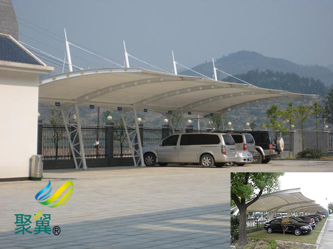上海市聚翼車棚廠專業批發消防隊膜結構車棚材料批發供應膜材料原廠批發、蓬布加工安裝?專業資質:設計壹級資質、施工承包壹級資質 。項目管理部、工程設計部、施工安裝部、經營銷售部、產品研發部、市場開發部、人力資源部等十多個部門組成。