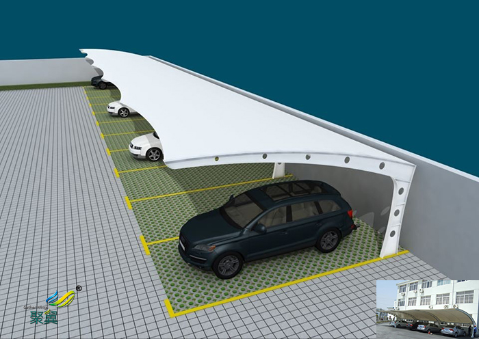 3、膜結構車棚具有極短的施工周期。膜結構車棚的一切設計,加工,制作都可以在工廠完成,在現場只要安裝作業。相比傳統建筑工期縮短了2倍。
