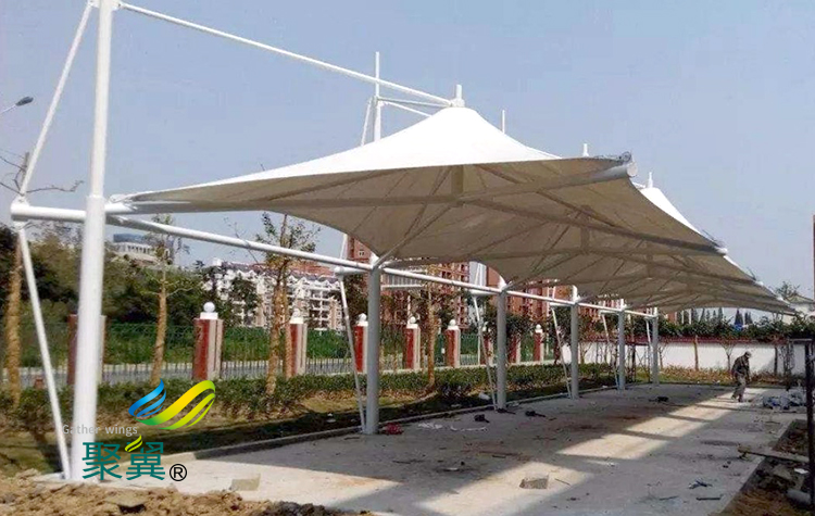 還有就是電瓶車、自行車停車棚的寬度一般在2.5m到3米就夠用了,所以采用的停車棚結構一般為單邊車棚的形式。