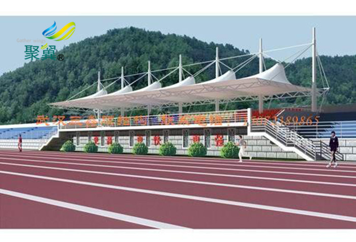 操場看臺膜結構頂棚|體育場張拉膜罩棚|運動場看臺雨篷