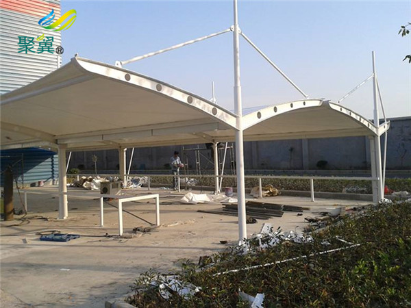 膜結構車棚抵御風雨的能力是一般雨蓬之類不可比擬的。車棚的膜材,可使用三、四十年。特別是遇到劇烈的暴風雨天氣,膜結構建筑巍然不動,毫發不損。