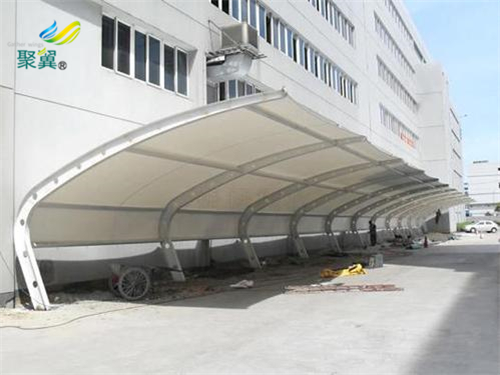 膜結構車棚是一種張拉膜結構建筑,它作為一種新興的建筑結構和形式,擁有著造型獨特、材質輕巧、快速安裝、不易燃燒,使用安全,節能減排等眾多優點,深受這世界各地建筑大師的喜愛,被公認為是21世紀的“綠色建筑”。在中國的膜結構市場上,