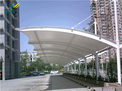 (4)膜結構單元的安裝應連續,當無法連續一次性完成安裝作業時應采取可靠臨時固定措施,以便抵抗施工期間可能發生的強風,同時還要注意張拉膜面不積水。