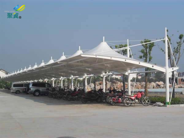 膜結(jié)構(gòu)車棚的頂篷采用篷布材料和膜材,使其具有強度高、耐久性好,而且自身就具有很好的清潔能力,同時不受紫外線輻射的影響。如今,停車場的規(guī)劃和建設(shè)已成為城市建設(shè)中的重要組成部分,對于