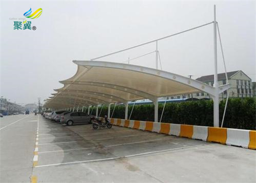 膜結構車棚的修建是在國內現是已十分盛行且是常見的。從大大小小的廣場是到現在的城市標志性的修建,包含是許多咱們的像不能是占用許多當地的需求遮陽的場所,通常都是有膜結構的車棚修建的身影,但眾所不知的是,膜結構的車棚資料的稀缺則是讓這一簡便、節能的新式修建資料一時無法很多遍及。膜結構車棚具有十分良好的承載功能,能以是很小的厚度接受相當大的荷載。膜結構車棚的強度是和剛度主要的是使用了其幾許形狀的合理性,是以資料直接是受壓來替代曲折內力,然后是充分的發揮資料的潛力。因此的膜結構車棚是一種強度高、剛度大、資料省的即經濟是又合理的一些構造方