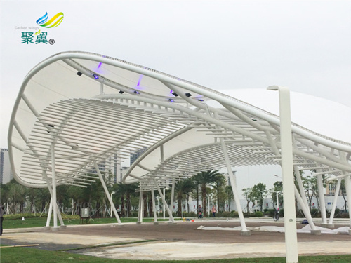 3.更大跨度的建筑空間由于自重輕,膜結(jié)構(gòu)可以說是一種非常優(yōu)異的新型建筑材料,其廣泛應(yīng)用于各種出入口工程,可以不需要內(nèi)部支撐面,大跨度、商業(yè)頂棚、景觀棚,使用壽命可以達到15年以上,可以說作為出入口材料具有天生的優(yōu)勢。覆蓋空間,這使人們可以如果排除人為破壞可以說膜結(jié)構(gòu)出入口工程基本沒有缺 點,更加靈活使用膜結(jié)構(gòu)建筑。