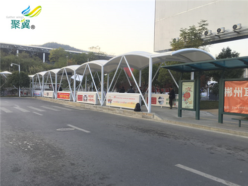 膜結構停車棚,家附近的公交站點同樣也是膜結構材質的,其中較為顯著的一個特點就是公交站臺,,以前的公交站臺大多數是完全沒有任何遮擋的,一到下雨天或者下雪天,大家只能被淋濕,有的公交站臺還會有鋼鐵材質的遮陽棚,但是這種遮陽棚的缺點就是導熱,而且經過了一段時間的風吹雨淋極容易生銹,隨著科技的發展,現如今公交站臺使用膜結構材質的遮陽棚越來越多,那么這種材質的遮陽棚有什么優勢呢?