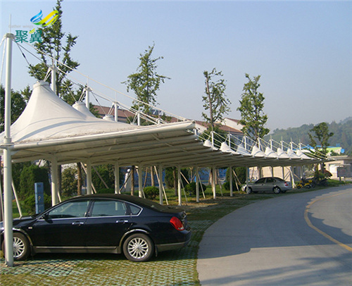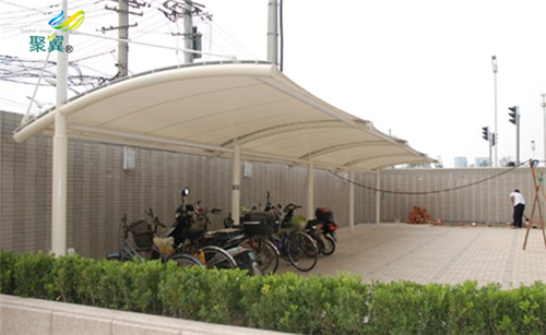 膜結(jié)構(gòu)遮陽棚膜材有較高的反射性及較低的光吸收低,并且熱傳導(dǎo)性較低,這程度上阻止太陽能進入室內(nèi)。另外,膜材的半透明性保證了適當(dāng)?shù)淖匀宦⑸涔庹彰魇覂?nèi)。