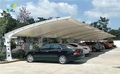 膜結構車棚是一座雕塑,一件藝術品,給人美的視覺享受。其柔美,其曲線,其剛柔并濟,其豐富造型,其潔白無瑕,讓人眼前一亮,回味悠長。 輕便性,重量輕,絕對保證棚下人和物的安全。