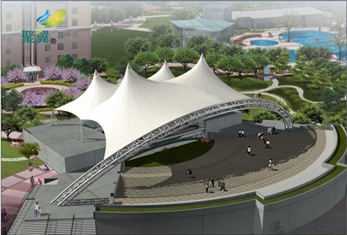 1、張拉膜結構的高點還能夠與采光和通風功用結合規劃,在高點處安裝透明材料,引進直射光線。